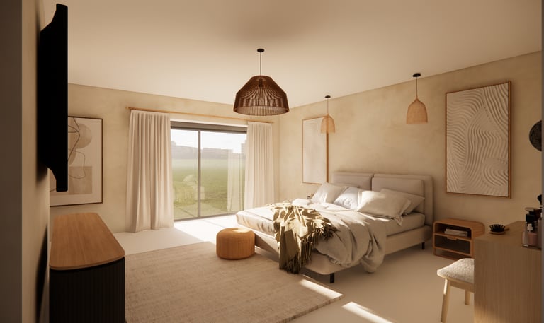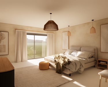 Réalisation d'une chambre dans le style Japandi pour une chambre d'hôtes